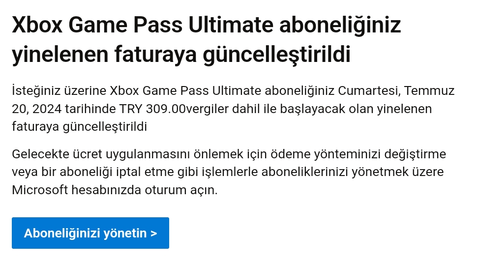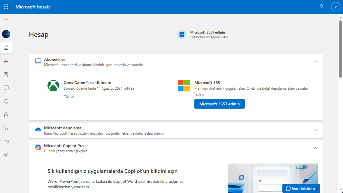 Ve Microsoft'un ana sayfasında da sonraki ayda da 45 TL çekeceği gözüküyor.