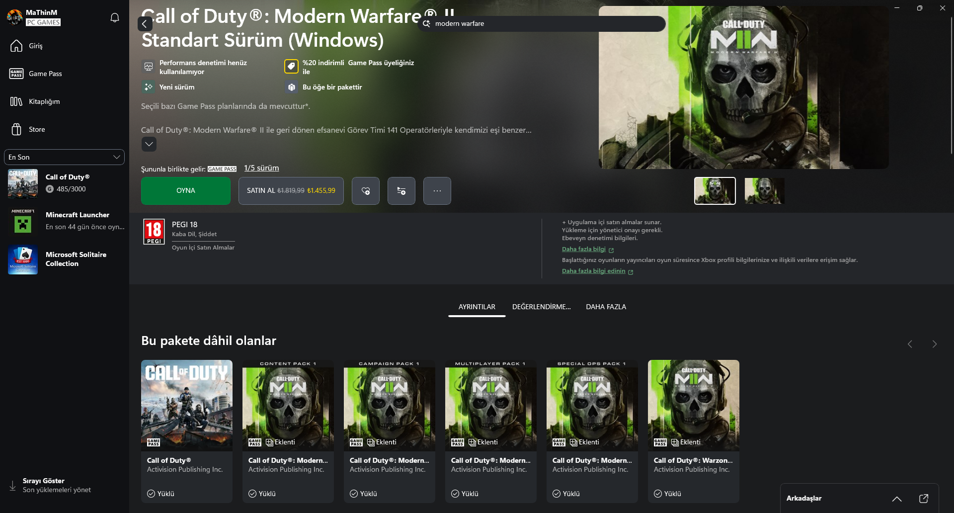 Xbox Game Pass'te MW2'ye giriş yapılamıyor