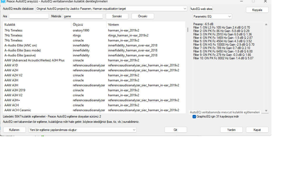 Eğer bulamıyorsanız, Equalizer default seçeneğini aktive edip paylaştığım resimden yukardaki Frequencies kısmını, Gain Values kısmını ve Quality (Q) kısmını gördüğünüz şekilde el ile girebilirsiniz. Aşağıdaki Save butonuyla istediğiniz ismi vererek kaydedebilirsiniz.