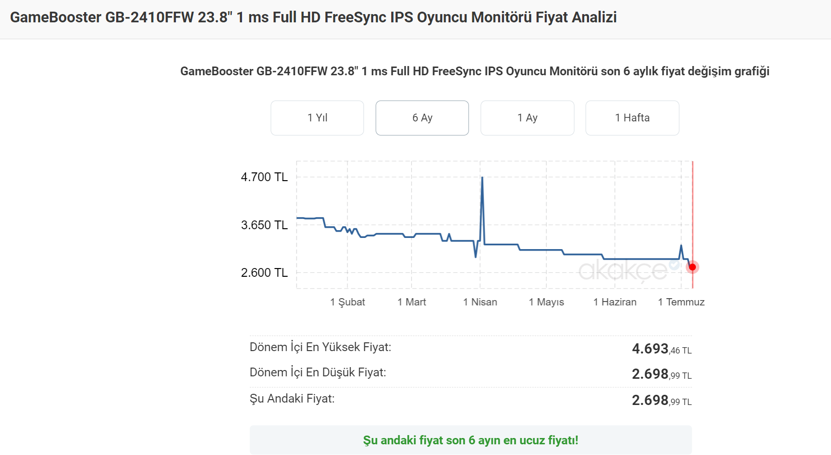 Son 6 ay'ın en ucuz fiyatı.