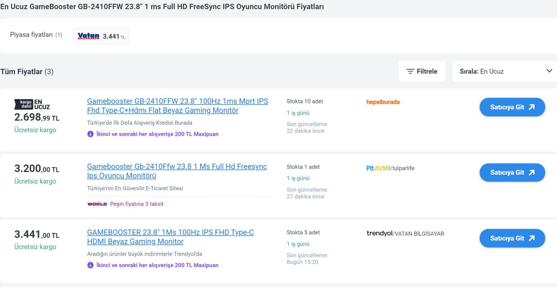 Elektronik Gamebooster GB-2410FFW 23.8" 100Hz 1ms Mprt IPS Fhd Monitör 2.698TL