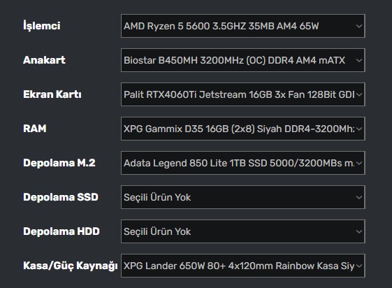 Özelleştirme olarak da SSD'yi 1TB yapıp ramleri Corsair seçmeyi düşünüyorum.