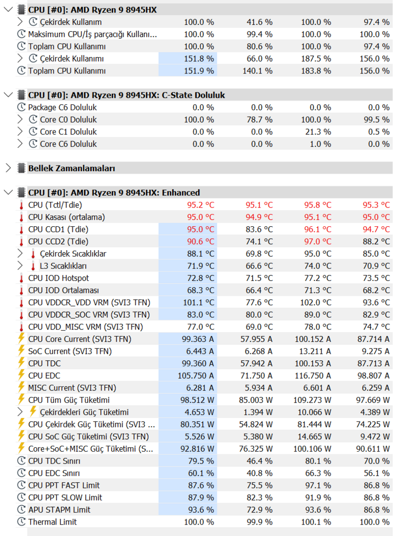 Buda benzer şekilde işlemciye Prime95 ile yaptığım yaklaşık 15 dakikalık test sonucu.