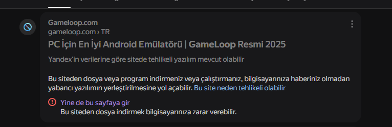 3 gün önce GameLoop indirmiştim ve bazı oyunlarda Gmail'lerimi girip oyun oynamıştım. 2 gün boyunca bilgisayar çok kasmaya başladı virüsle alakalımı bilmiyorum ama ben yine de Windows'un keni virüs taramasını yaptım. 1 zararlı yazılım gibi bir şey buldu tam neydi ismi hatırlamıyorum ama yüksek derece riskliymiş ve ne zaman indirdiğimde yazıyordu. GameLoop'u indirdiğim gün ile aynı gün. Ben o gün GameLoop'tan başka hiçbir şey indirmedim. Ayrıca o gün Gmail'ime farklı bir cihazdan giriş yapılmaya çalışılmış. Ben fazla mı abartıyorum bilmiyorum ama direkt GameLoop'u sildim ondan kaynaklı olabileceğini düşünüp. Ek olarak GameLoop'u indirirken Yandex uyarı vermişti zararlı olabilir diye. VirusTotal'e attım demin ve 6/71 zararlı gösteriyor. Resmi siteden indirdiğime eminim.
