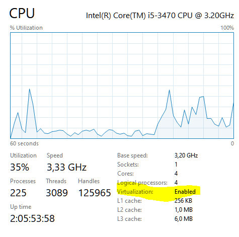 Ayrıyeten PC açılırken BIOS ayarlarına girip CPU sanal çekirdekleri aktif etmen gerekiyor, virtualization diye geçiyor olabilir. Zaten açık olup olmadığını CTRL+Shift+ESC yapıp, yukarıdan performans sekmesine gelince sağ altta virtualization diye yazar. Onun aktif/enabled olması gerekiyor.