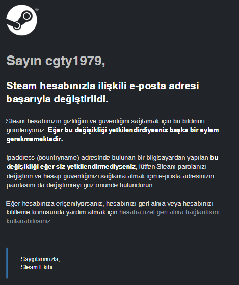 Bununla birlikte verdiği mail adresinde giriş geçmişindeki IP adresi, Steam hesabına bu sabah giriş yaptığı IP adresi açık bir şekilde ekran videosu çektim ve siteye mail gönderdim, site inceleme sürecindeyiz diyor. Hesap bilgilerini satıcı site üzerinden iletti ayrıca, orada mesajlar ortada.