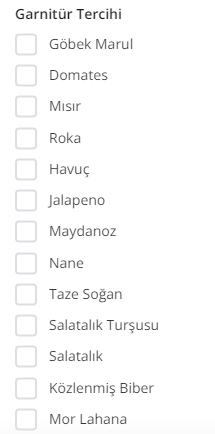 Getir'den çiğ köfte söyleyeceğim. Garnitür seçimi diyor.