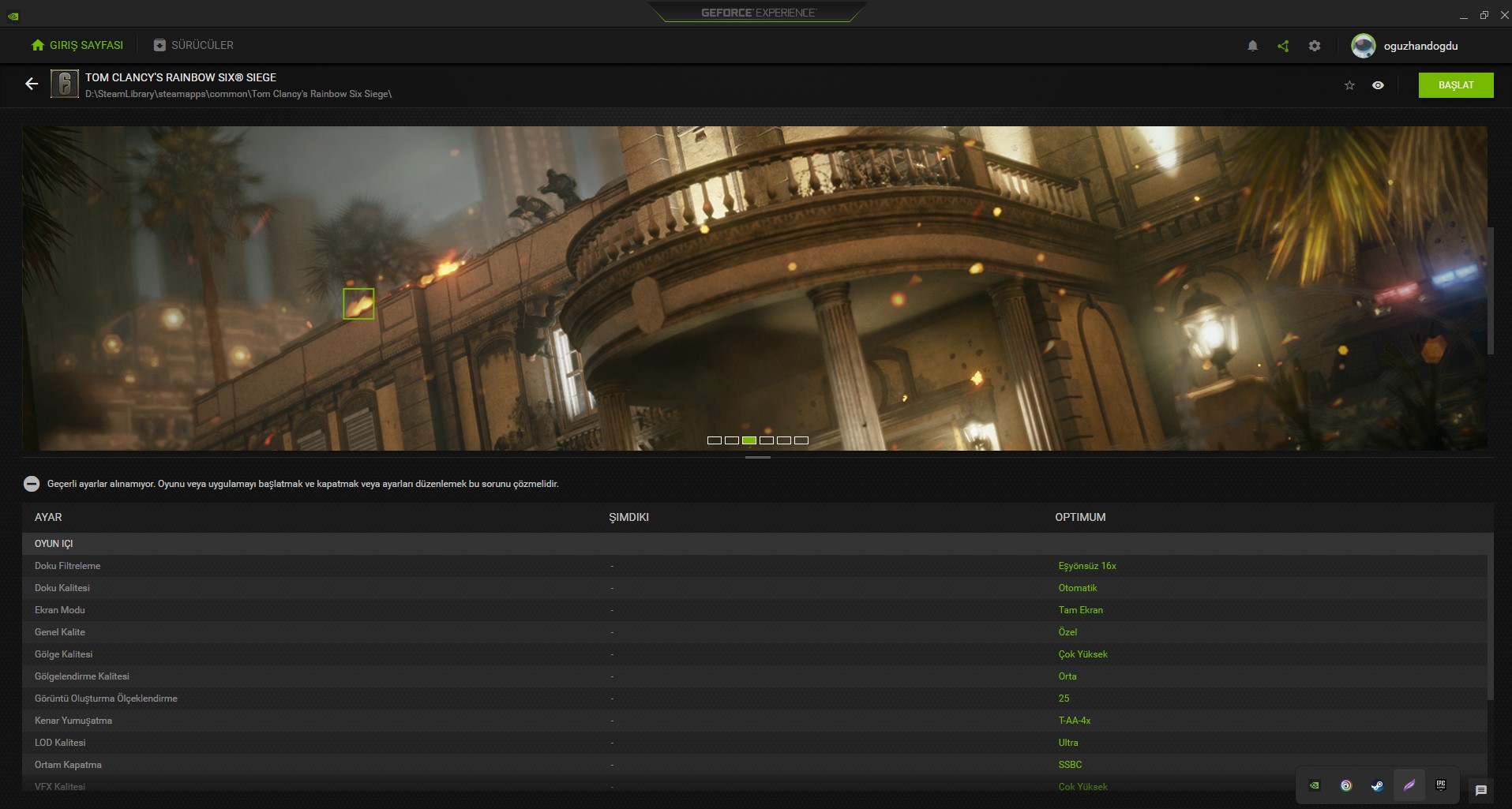 GeForce Experience R6'yı optimize etmiyor