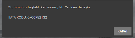 GeForce NOW 0xC0F52132 hatası