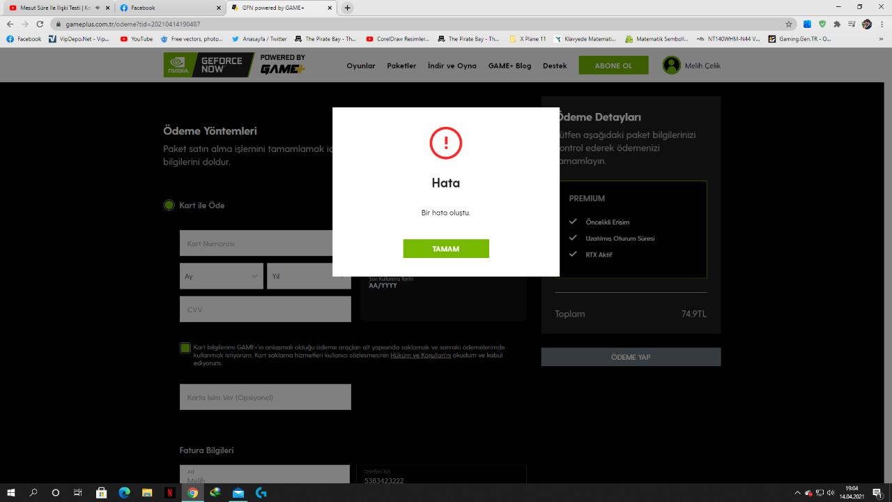 Arkadaşlar merhabalar. GeForce NOW ücretli aboneliği açmak istiyorum ancak hangi kartımı denersem deneyeyim 3D şifresini girdikten sonra "Hata" diye bir bilgi geliyor. Çok araştırdım ancak bir çözüm bulamadım. Daha önce başına böyle bir durum gelen varsa nasıl çözdüğünü öğrenebilir miyim?