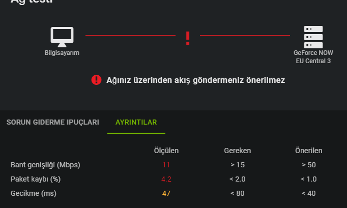 Benim internetim 35Mbps ve GeForce Now'da test yapınca 11 gözüküyor. Oyunlarda da bulanıklık oluyor yardımcı olabilir misiniz acaba?