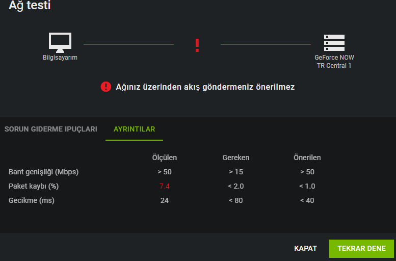 Çözemediğim bir sorun var farklı değerlerde paket kaybı oluyor. Sebebi nedir?
