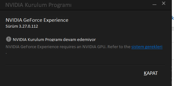 Merhaba. Benim ekran kartım çok FPS vermediği için GeForce NOW'ı indirmeye çalıştım fakat bir sorunla karşılaştım. Fotoğraftaki hatayı nasıl çözerim?