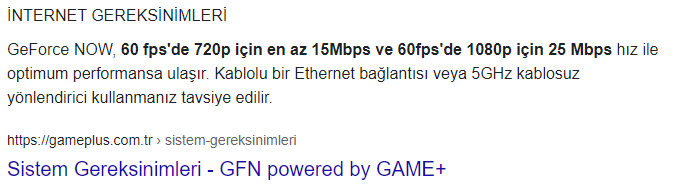 12 Mbps üstü internet ile 720p sabit 60 FPS oynayabilirsiniz. 1080p için 25 Mbps gerekli.