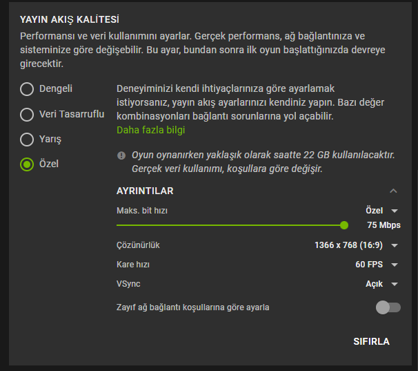 Onunla alakalı bir durum değil. Zayıf ağ bağlantısı koşullarına göre ayarla seçeneği açılırsa görüntü bulanıklaşır. İnternet stabil değil ise donmalar, FPS düşüşleri olur.