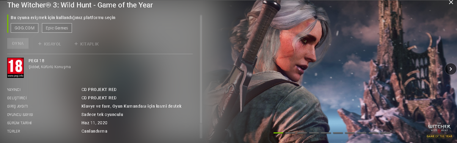 GeForce NOW'da Steam The Witcher 3 GOTY yok mu?