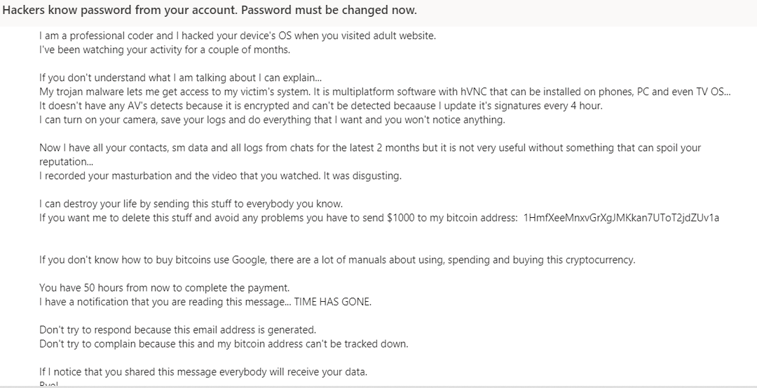 Şimdi bana bir e-posta geldi. Videolarımın başkalarına gönderilmesi benim için sorun değil 1000 dolar gönderecek kadar enayi de değilim. Ne kadar gerçek olabilir bu e-posta? Antivirüs kullanmıyorum bile ama Antivirüs'ün algılamadığını söylüyor. Şifrelerimi değiştirmeli miyim?