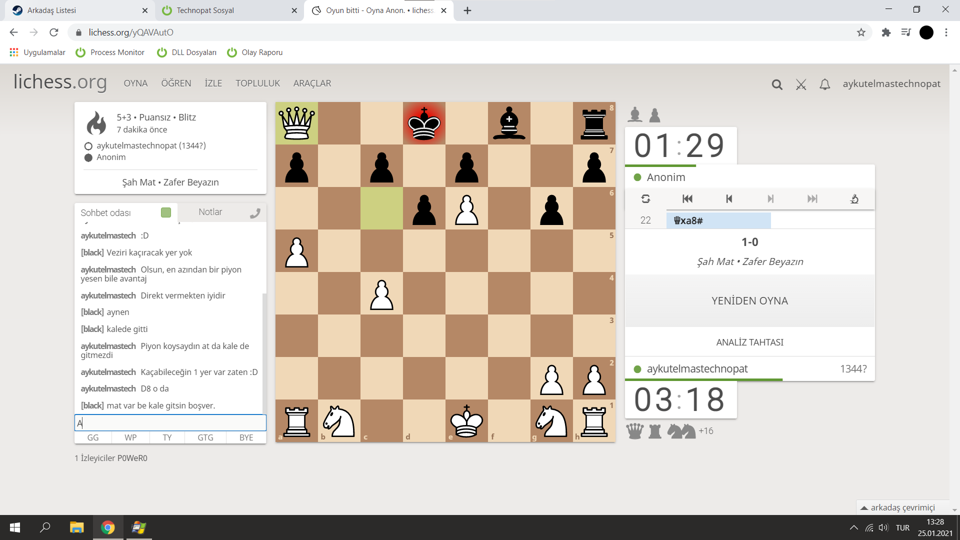 Blitz Chess • aykutelmastechnopat vs Anon.