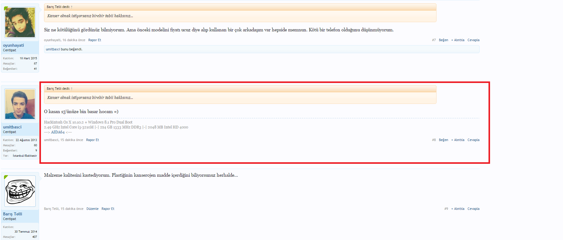 Olayı siz başlatmışsınız adamda cevabını vermiş. Ben sizin mesajınızdan önce konuda bir şey göremiyordum. Adamın konusunu baltalamayın alınır alınmaz ama gelipte adamın konusunda telefonu kötüleyip sonrada konu kaydı diye kilitlenmesini isteyemezsiniz. İnsanlarda utanma arlanmada kalmamış maalesef.
