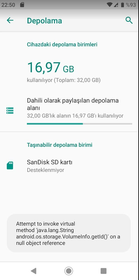 Telefonumun hafıza kartını algılama sorunu oluştu. Daha önceden böyle bir şey olmadı. Garantiye verdim sorunumu açıkça belirttim. Batarya değiştirmişler ve yazılım yüklemişler. Hafıza kartı olayını da yapmışlar. Telefonu dahili depolama yapabiliyordum fakat şimdi yapamıyorum. Çıkan hatayı paylaşmak istiyorum.