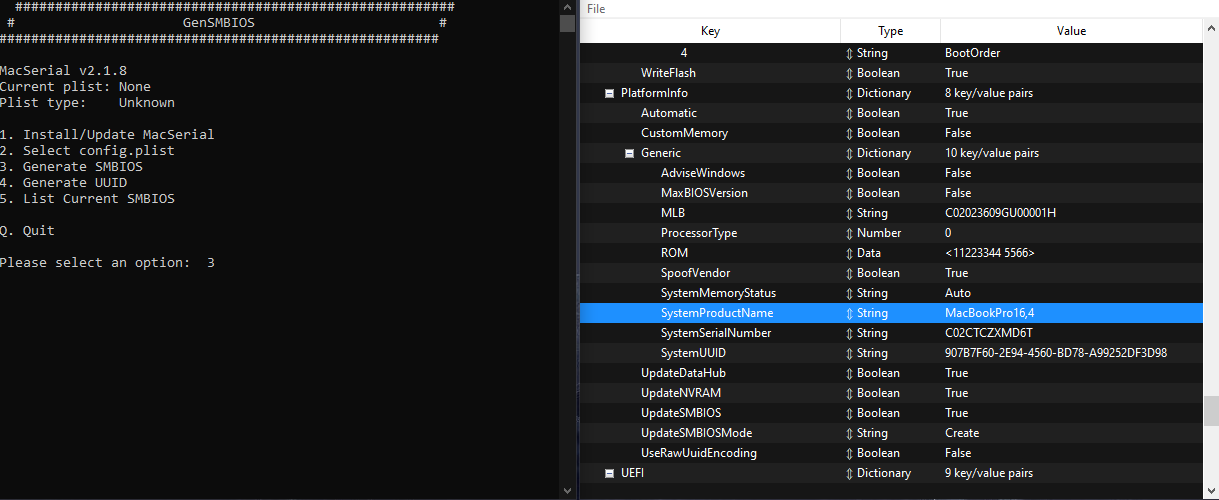 GitHub - corpnewt/GenSMBIOS: Py script that uses acidanthera's macserial to generate SMBIOS and optionally saves them to a plist.