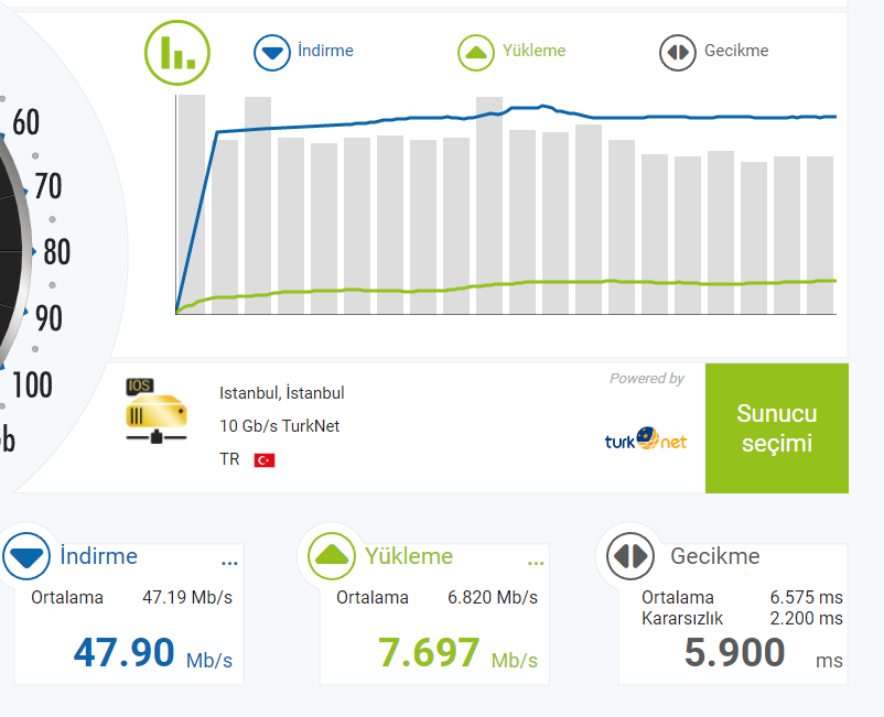 Speedtest üzerinden test yapıyorum sonuçlar böyle çıkıyor.