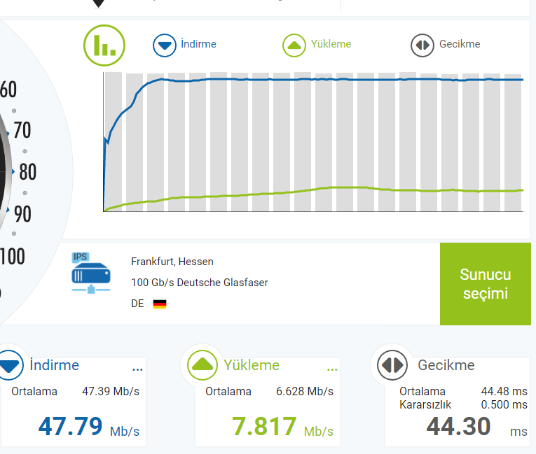 Bir de bu siteden hem TurkNet sunucusunu hem de Frankfurt sunucusunu test edebilir misin?