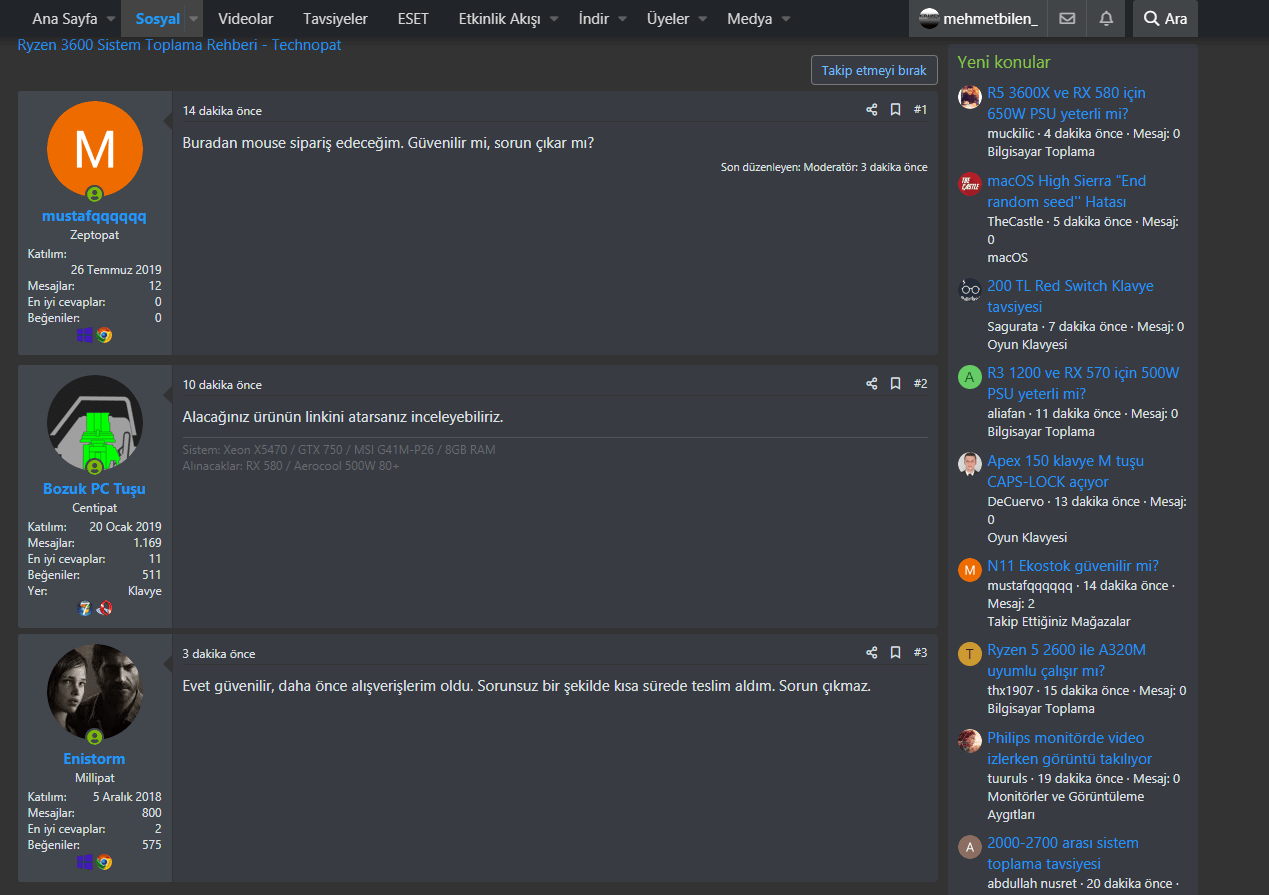 Umarım bu konu yayınlanır çünkü son zamanlarda Technopat moderatörlerinden şikayetçiyiz. Başımdan ufak bir olay geçti. Bir konu açılmıştı dün gece 00: 15'de. "N11 ekostok güvenilir mi? " Başlığı ile yayınlanmıştı ve içerisinde şöyle yazıyordu "buradan "mosue" sipariş edeceğim. Güvenilir mi, sorun çıkar mı? ". Konuyu açan arkadaş "mouse" yazarken sehven "mosue" yazmış. Acaba yazım yanlışı mı yoksa mosue diye bir şey mi, arıyor diye merak ederken konusuna "pardon, mosue nedir? " Diye cevap yazdım. Moderatörler "gereksiz mesajlar" uyarısı ver. Birincisi konu hakkında bilgi almak istedim ve gayet kibar bir şekilde "pardon, mosue nedir? " Yazdım. Benim bugüne kadar 5 adet uyarım var. Noktalama hatası olsun. -De -da hatası olsun. Benim konularım yaklaşık 45 dk de onaylanıyor. Bu arkadaşın konusu anında onaylanmış ve moderatör kontrolünden geçmemiş gibi görünüyor. Şimdi benim suçum neydi de kırıcı bir şekilde uyarı aldım. Burası Technopat. Burası topluluk ve biz birbirimizle iletişime geçince uyarı alıyoruz. Bir sürü kural koyup moderatörlerin bu kurallara pek itimat etmemeleri gülünç. Dikkat ederseniz son zamanlarda bu çok artış gösterdi. Konumu okuyan herkese teşekkür ederim. Sizleri bir nebze meşgul ettim. Dünkü konuya ait görseli de ekliyorum.
