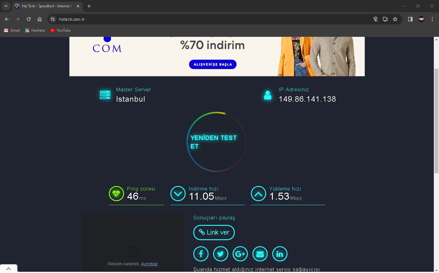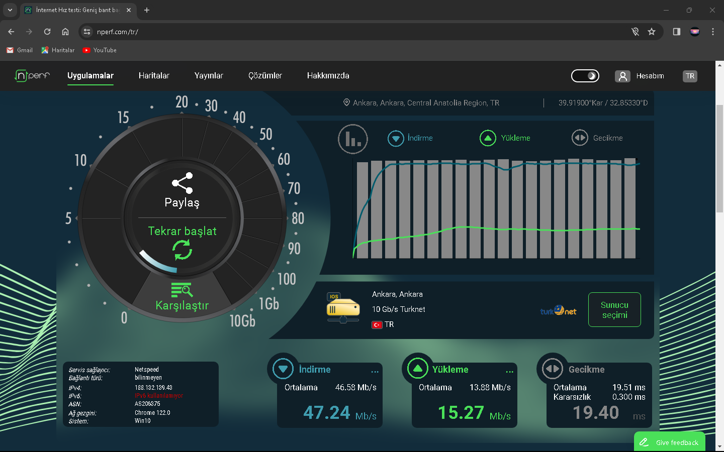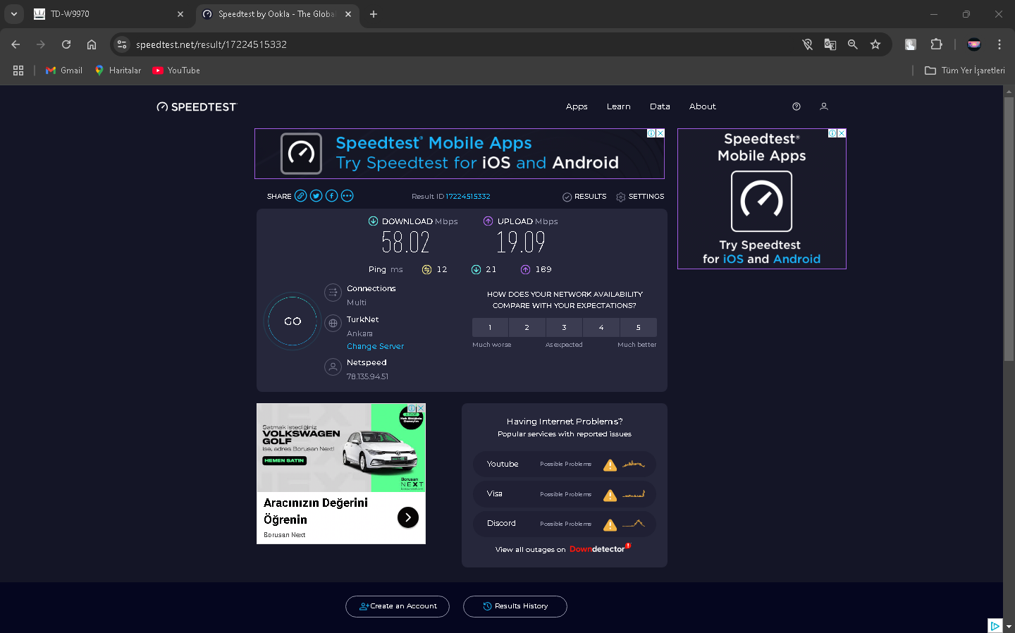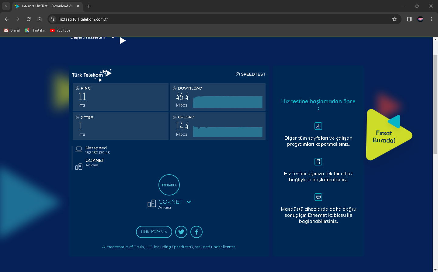 2024 Mart ayı sıralarında Netspeed ISS'ni kullanıyorduk ve fiyatlar fazla gelmeye başlayınca yeni ISS aramaya başladım(Netspeed 289 lira civarıydı sanırsam). Kısa bir aramayla GIBIRNet'i buldum ve fiyatı uygun bulduğumdan ve kötü bir ünü olmadığından geçiş yaptık (GIBIRNet 220 lira civarı geliyordu indirim falan filanla). O sıralarda modem arayüzünde Max. Download 51k ve upload 16k gözüküyordu. İlk başlarda GIBIRNet Netspeed'teki gibi hız alıyor ve kopma vesaire yaşamıyorduk. Bu son bir aydır (aralık 2024-ocak 2025) kopmalar, hız düşmesi ve ping (Apex Legends'te özellikle) yaşamaya başladım. CS2 Türk sunucularında bile Server'daki en yüksek ping alanlar arasındaydım, Netspeed'te durum tam tersiydi. GIBIRNet, hızı Türk Telekom'un önerdiği hız limitlerine sabitlemesine rağmen sonuç değişmedi. Yakın zamanda darıcada gaz patlaması oldu ve ilçe 1 hafta kadar doğalgazsız kaldı. Bunun duruma herhangi bir etkisi oldu mu bilemem. Karşılaştırmak için Netspeed'ten çıkış, GIBIRNet'e giriş, GIBIRNet'ten çıkış ve Netspeed'e geçişte hız testi yapıp, ekran resimlerini aldım. Bunun yarı sıra mart 2024'ten ocak 2025'e modem arayüzündeki Max. Download 62K. Ve upload 26k.'ya yükseldi. Netspeed ve GIBIRNet'te 100 Mbps'lik VDSL tarifeler kullanıyordum.