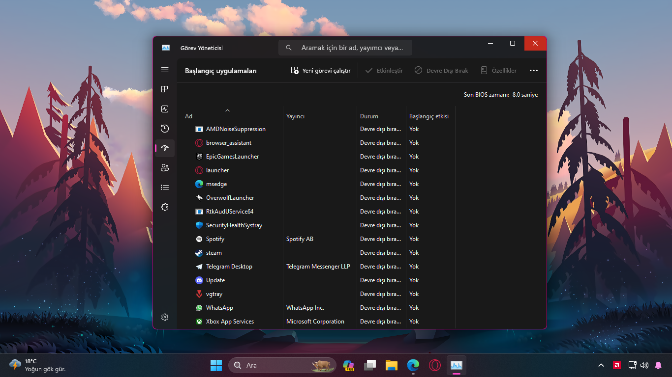 Görev Yöneticisi başlangıç kısmında bulunan son BIOS zamanı da 12.6'dan 8.0'a düştü tabii bu süreleri karşılaştırmak doğru olmaz ama açılışta da ciddi manada hızlanma oldu.