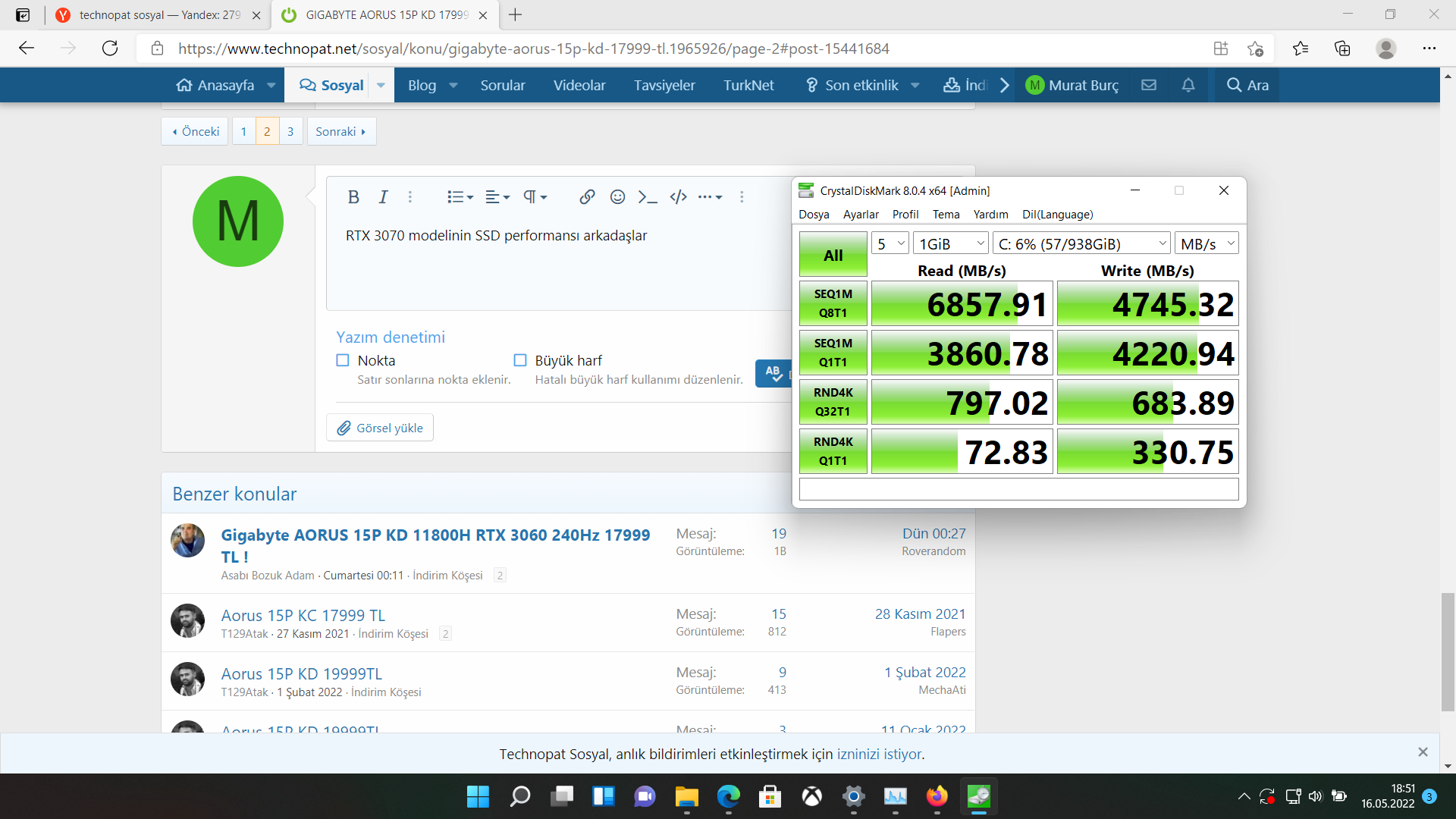 Hayırlı olsun.RTX 3070 modelinin SSD performansı arkadaşlar