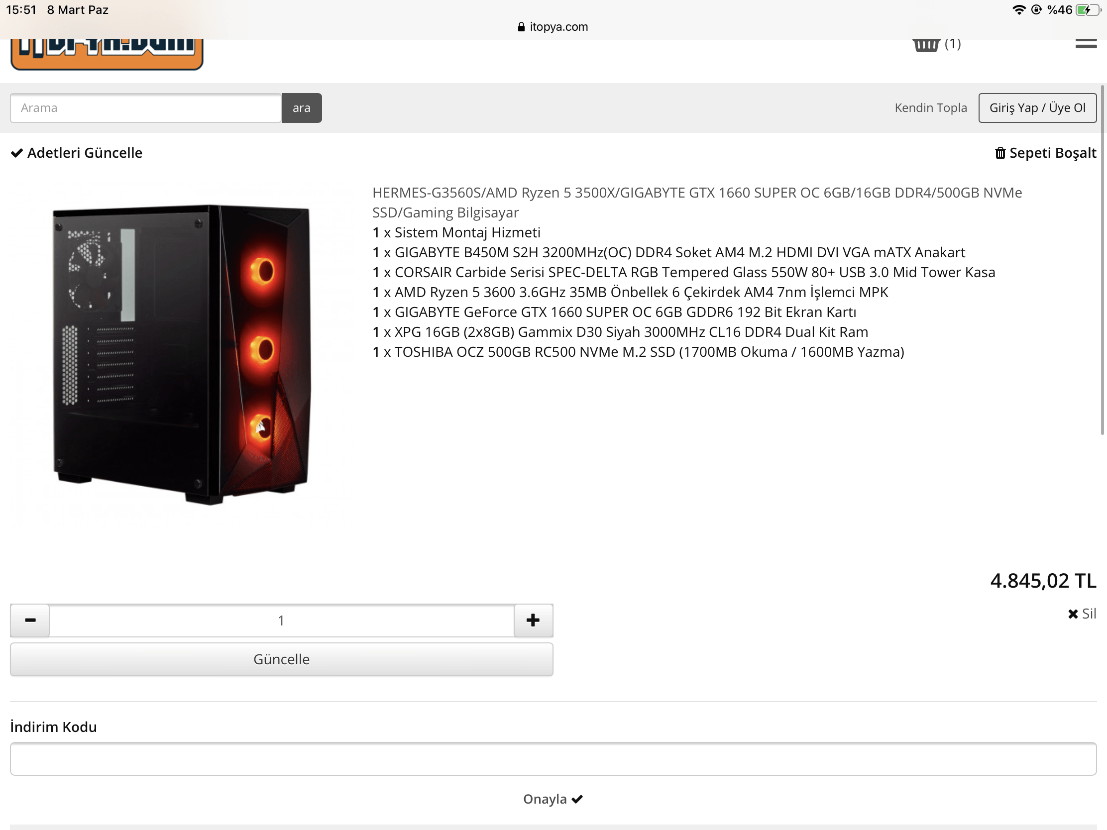 -İşlemciyi 3500X seçince fiyat 4593 TL’ye düşüyor.