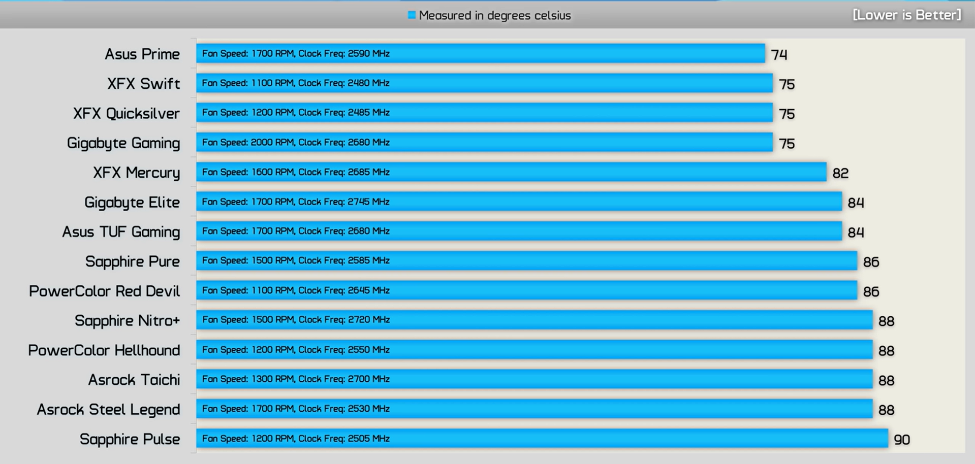 Kart fabrika çıkışı overclocklu, eğer söz konusu benchmarklarda Mhz değerlerine falan bakılacak olursa kart hem daha çok enerji çekiyor hem de daha yüksek frekanslara çıkıyor. Kartın diğer kartlardan ekstra sıcak çalışmasının bir sebebi de bu. Bunun tek çözümü de undervolt yapmak. Ben şu an ilk gün Witcher'ı denediğim ayarlarda undervoltlu bir şekilde 80-85 derece arası %40-45 fan rpmsi ile oynuyorum. Eğer fanları %50 civarına çıkarırsam genelde 85'i görmüyorum delta da aşağı yukarı 15-18 derece oluyor.