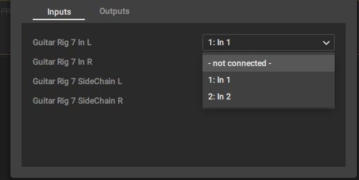 Nelerin seçildiğini görmem lazım, 2. fotoğrafta Guitar Rig 7 Out L kısmının sağındakine basınca açılan sekmenin, 3. fotoğrafta Guitar Rig 7 In L kısmının sağındakine basınca açılan sekmenin fotoğrafını atabilir misin, ayrıca eğer çıkıyorsa ASIO driverine ait görev çubuğunun sağında şu ikona basıp onun da ekran görüntüsünü atabilir misin: