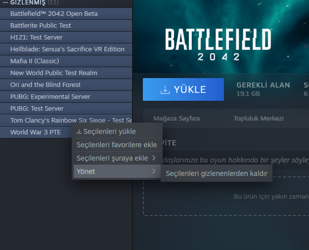 Profilimde gözükmemesi için kütüphaneden kaldırdığım oyunlar var.