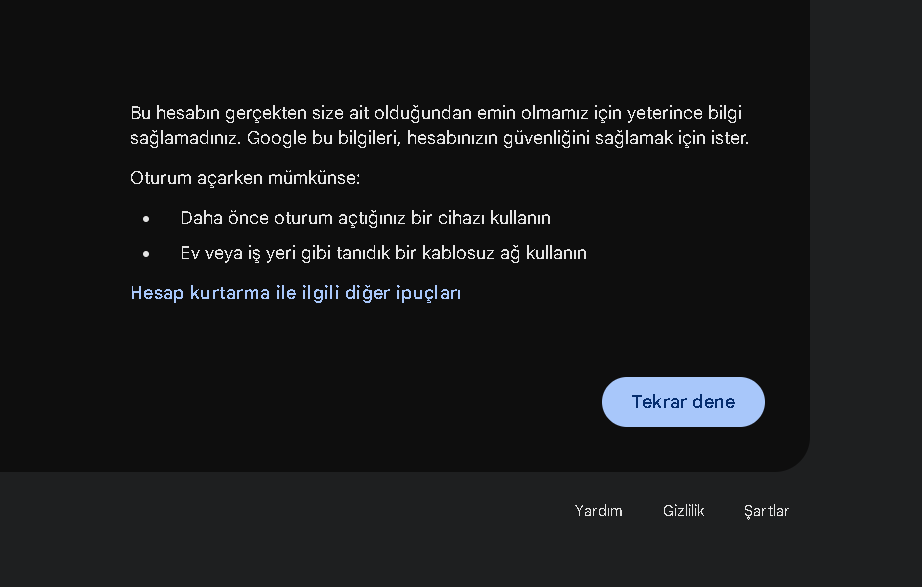 Merhaba, Gmail hesabıma giremiyorum. Şifreyi doğru bildiğim halde şu hatayı veriyor.