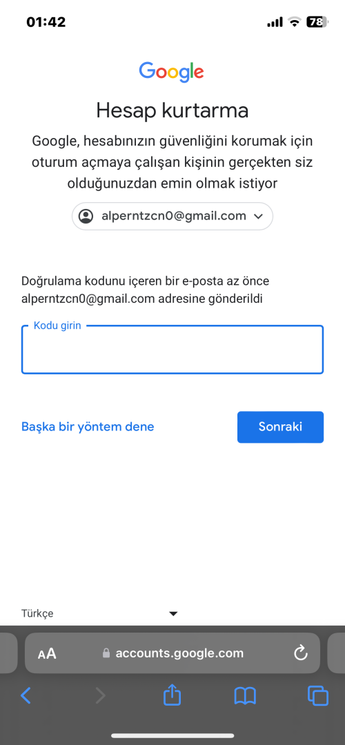 ''Başka bir yöntem dene'' basın. orada hangi yöntemler var bir bakın.Merhaba arkadaşlar, Google hesabımın şifresini unuttum yenilemeye çalıştığımda telefona kod geliyor. Bir sonraki adımda şifre yenileme kodu unuttugum maile gidiyor. Aşağıda sorunun eki mevcuttur, ne yapabilirim?