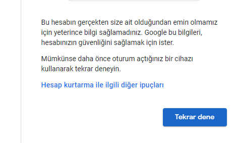 Kurtarma e postasını bilmiyorsun, telefon numarası kayıtlı değil, e güzel kardeşim Google bile sana çare olamamış biz ne yapalım?