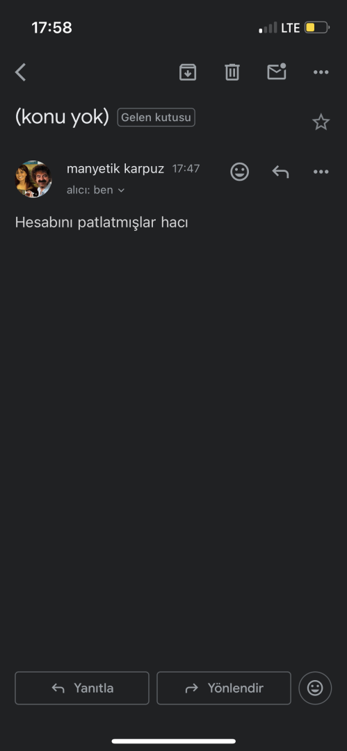 Ekran görüntüsü varsa atar mısınız? Hiçbir yetkili kişinin “hesabınızı patlatmışlar” şeklinde mail atacağını sanmam.