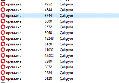 Görev yöneticimde birden fazla Opera var. Bu neden böyle sadece bir sekme açıkken? Parantez içinde yazan sayıyı sormuyorum bu arada birkaç uygulama arayla alt alta var onu soruyorum.