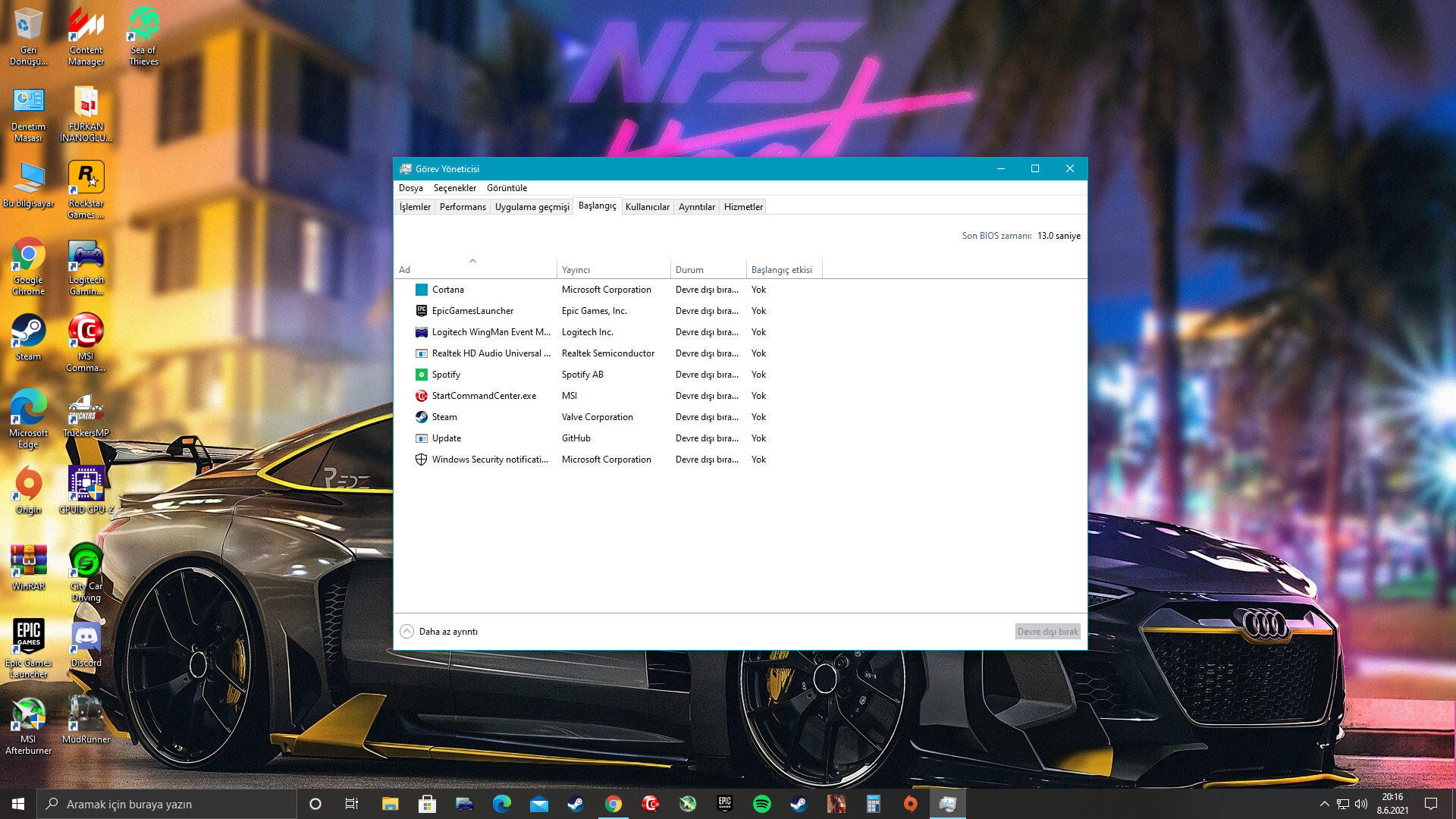 Görev yöneticisi başlangıç kısmında böyle bir şey gördüm.