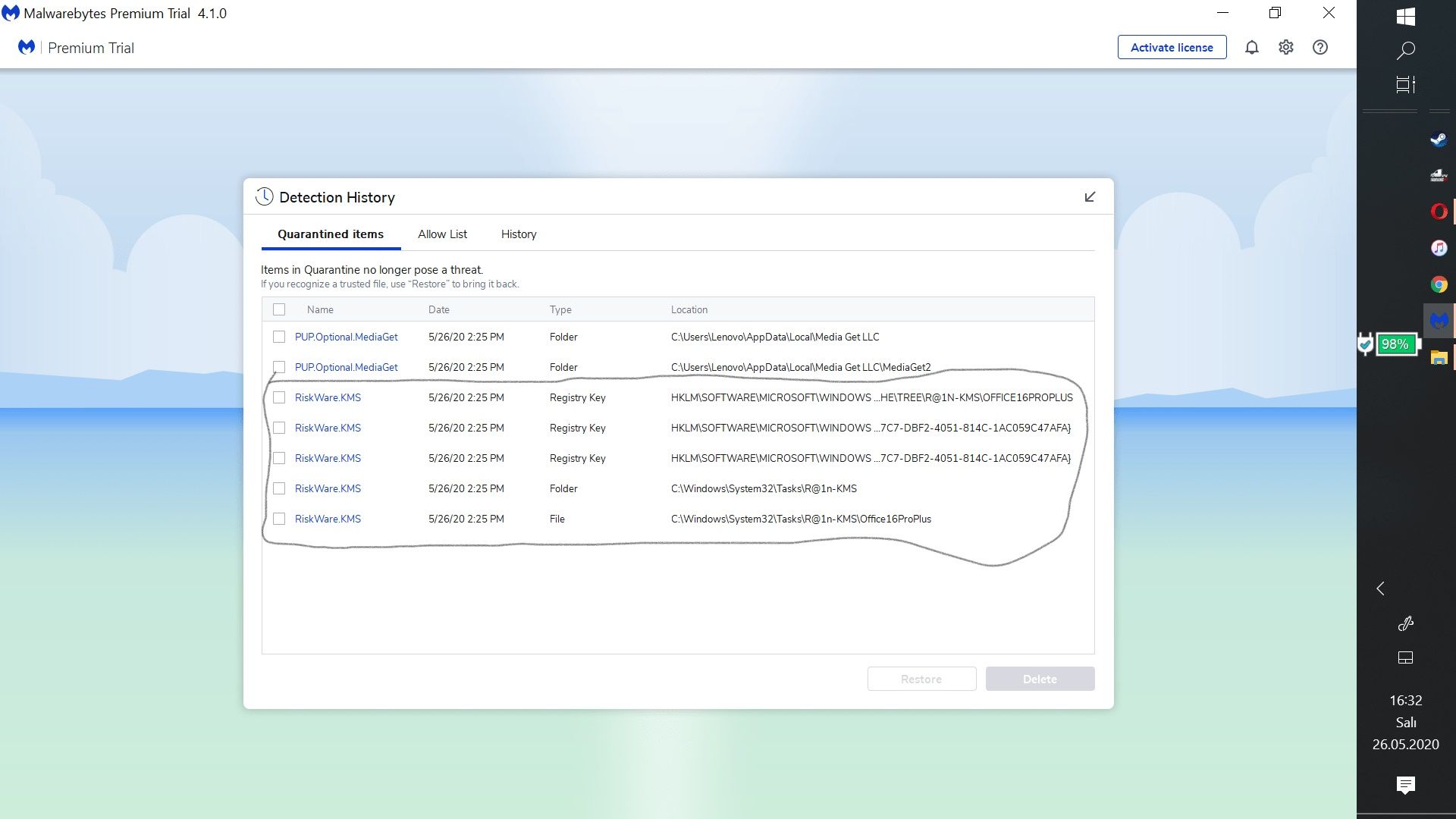 KMS sistem dosyaları ve kayıtları da dahil işletim sisteminde birçok değişiklik yapar. (Daha önce bu konuda mağdur olmuşluğum var) Ben virüs için değil KMS için format atmasını önerdim.Format atmak çözüm olabilir ama başka çözümler vardır mutlaka. Kasik format at diyenleri ciddiye almayın.