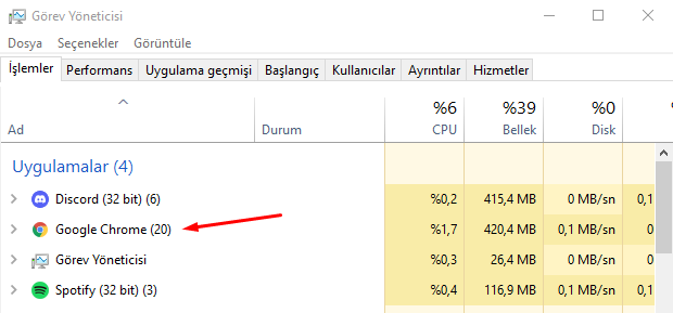 Görev Yöneticisi'nde çok fazla Chrome var