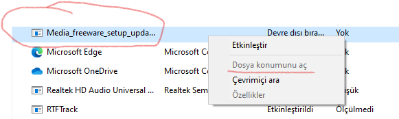 Arkadaşlar resimde gördüğünüz gibi bu dosyayı Görev Yöneticisi > başlangıç kısmında gördüm. Kaldırmak istiyorum ama bu dosyanın nerede olduğunu bulamadım. Nasıl kaldırabilirim? Şimdiden teşekkürler.