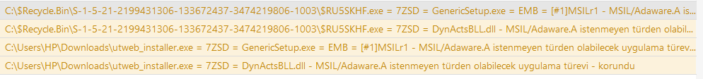 Bunlar çıktı, sonra Windows'un kendi uygulaması ile taradım fakat hiçbir şey çıkmadı. Bir sıkıntı olur mu veya tehlikeli ise virüsleri nasıl silerim? Yazarsanız memnun olurum.