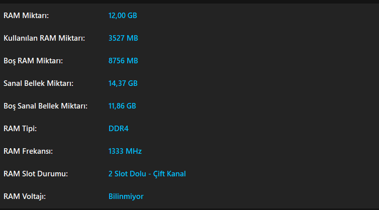Hata bildirmek istiyorum, şu anda bilgisayarımda 2 çift slot RAM var bunları algılıyor ama DDR3 olması gereken bellek tipini DDR4 olarak algılıyor.