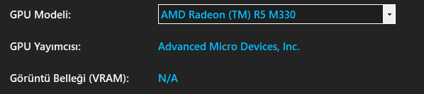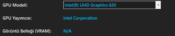 3.0 sürümünde bir hata bildirmek istiyorum. Dahili ekran kartımın ve harici ekran kartımın VRAM'leri N/A olarak gözüküyor.
