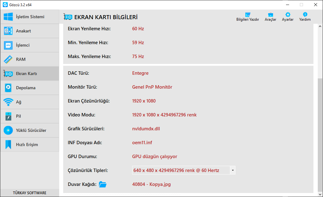 • GPU bölümüne VB sürümünden sonra devre dışı bıraktığımız Çözünürlük Tipleri özelliği geri aktif edildi. Bu özellik monitörünüzün çözünürlüğe göre kaç Hertz yenileme sunduğunu göstermektedir.
