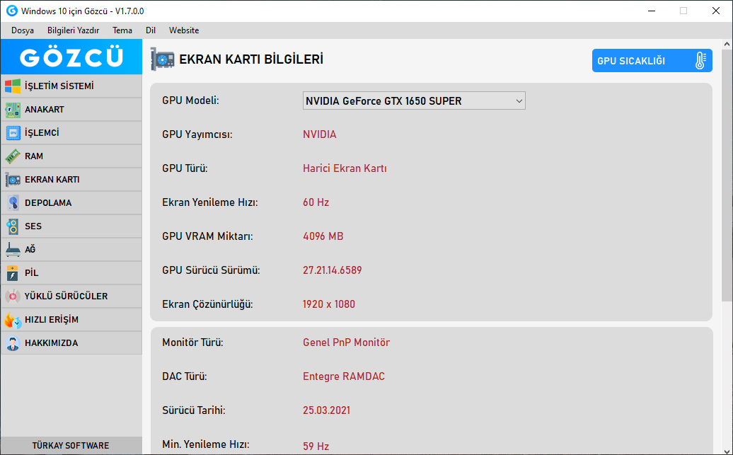 - CPU ve GPU sıcaklığı arayüze dahil olacak.
