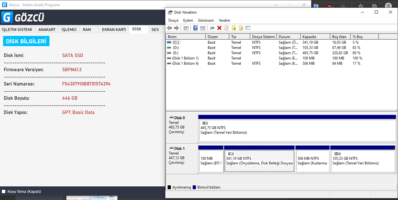Hata olarak sayılmasa da 2 tane diskim olduğu halde sadece 1'ini gösteriyor: